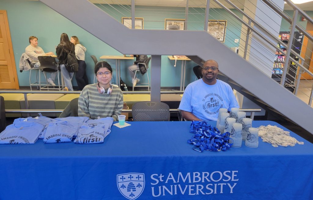 St. Ambrose University celebrated National First-Generation Day with music, “Bee First!” swag, and stories from students like Melissa and Gabriella, who shared how they’ve overcome challenges and found success as first-generation college students.