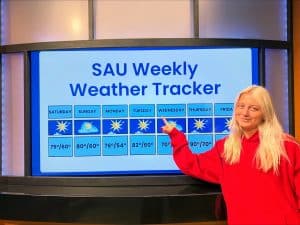 SAU student, Kaylynn Alfrejd, is a communications major who dreams of weather casting one day.