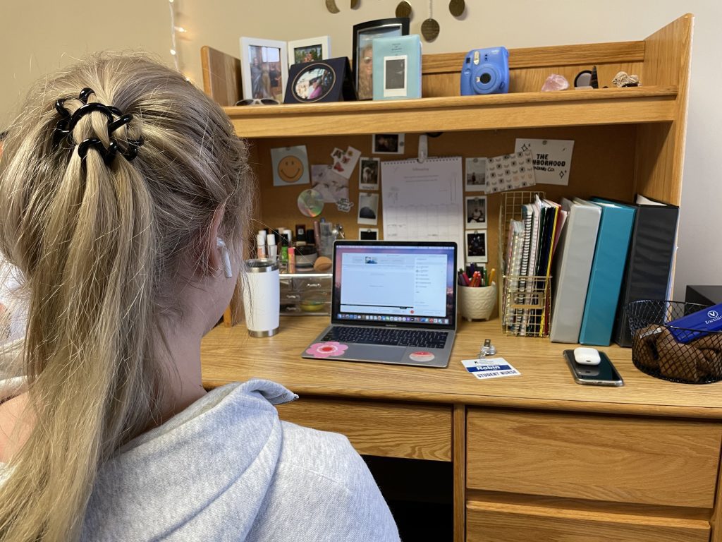 For the rest of the day, Leibold spends her time studying before she has to go to work. She sits at her desk and flips through her nursing textbooks and watches videos her professors post. This semester, Leibold found a way of studying that has been very successful for her.