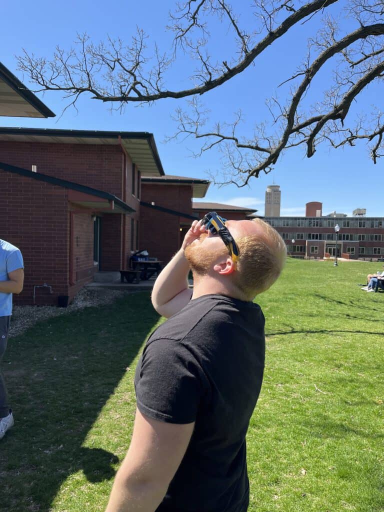 about going blind. Although Davenport wasn’t in the path of totality, SAU students certainly