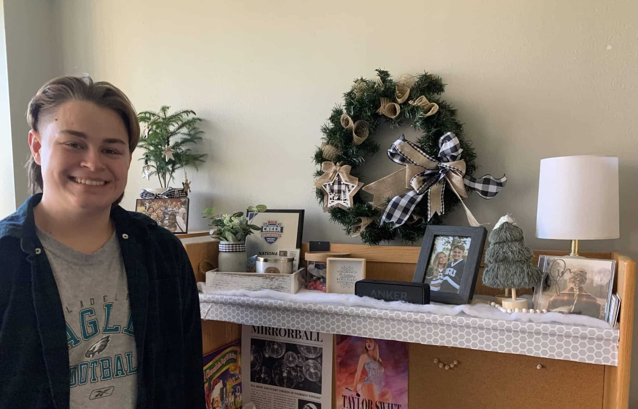 SAU Student Ryan Russo’s dorm room is ready for the holidays. Photo courtesy of Sarah Turner.
