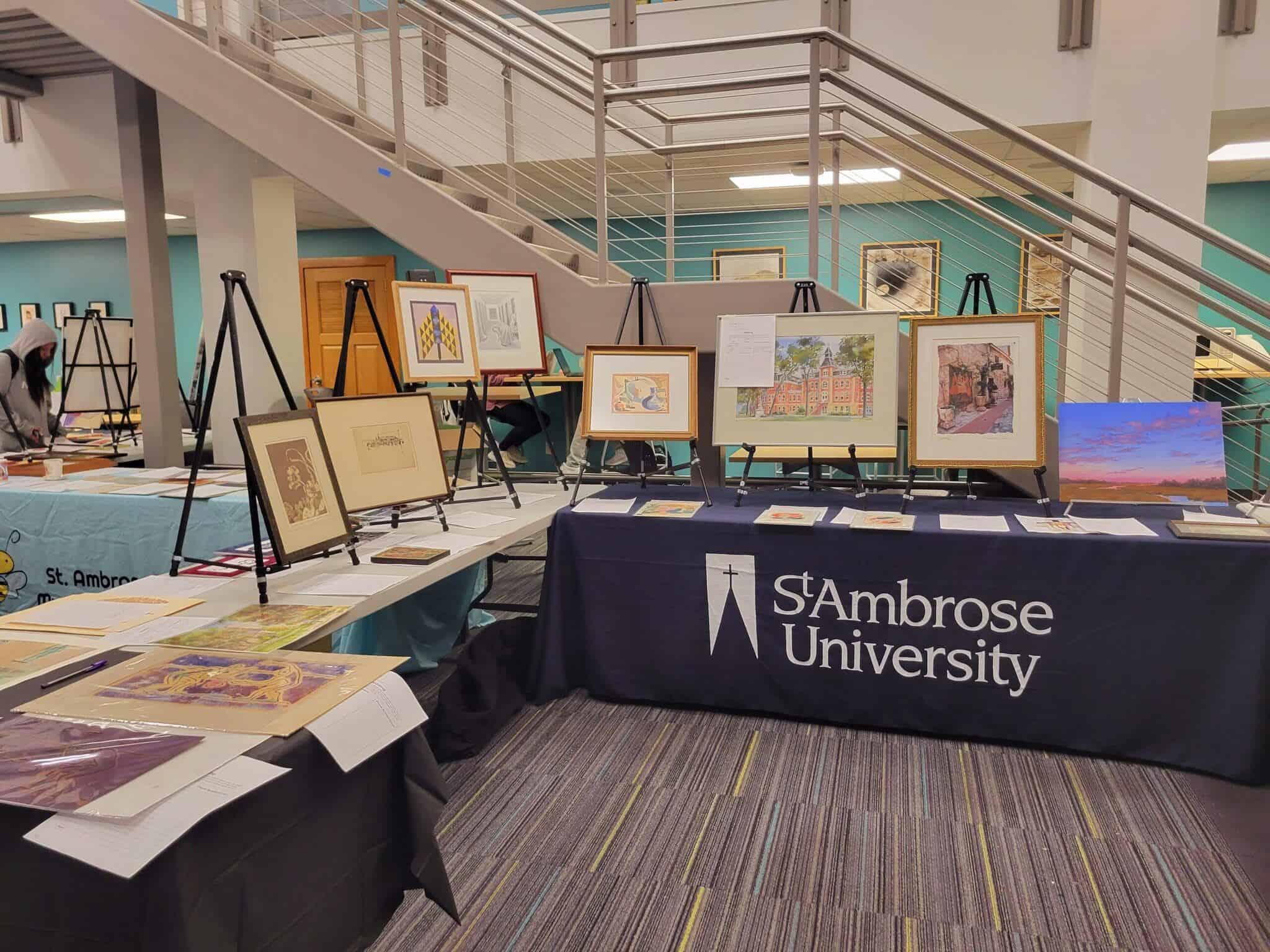 According to Dr. Terri Switzer, Professor and Director of the Art History and Museum Studies program at St. Ambrose, “We’ve been doing this (auction) in some form or another since about 2017, and we usually have anywhere from 200 to 400 pieces of artwork…we also have a tradition of combining the auction with a second day at an area museum, and we’ve partnered each year with the Figge Art Museum.”
