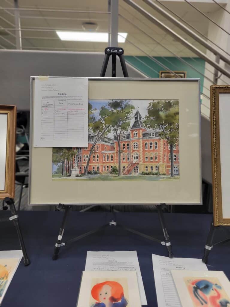 The art featured in this auction is donated by faculty and staff, students and community members and is a mix of 300 different paintings, drawings, pieces of woodwork, broadsides, and digital art.