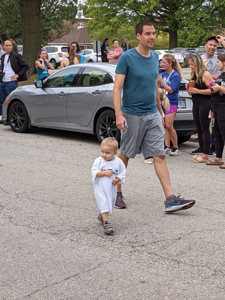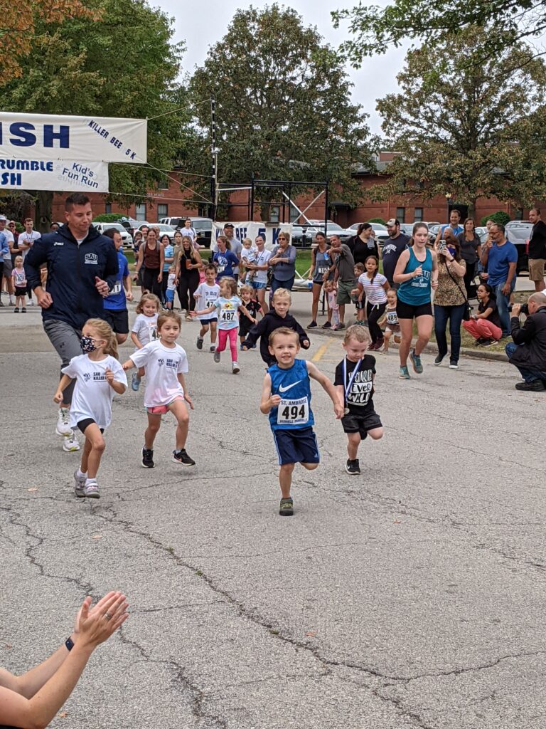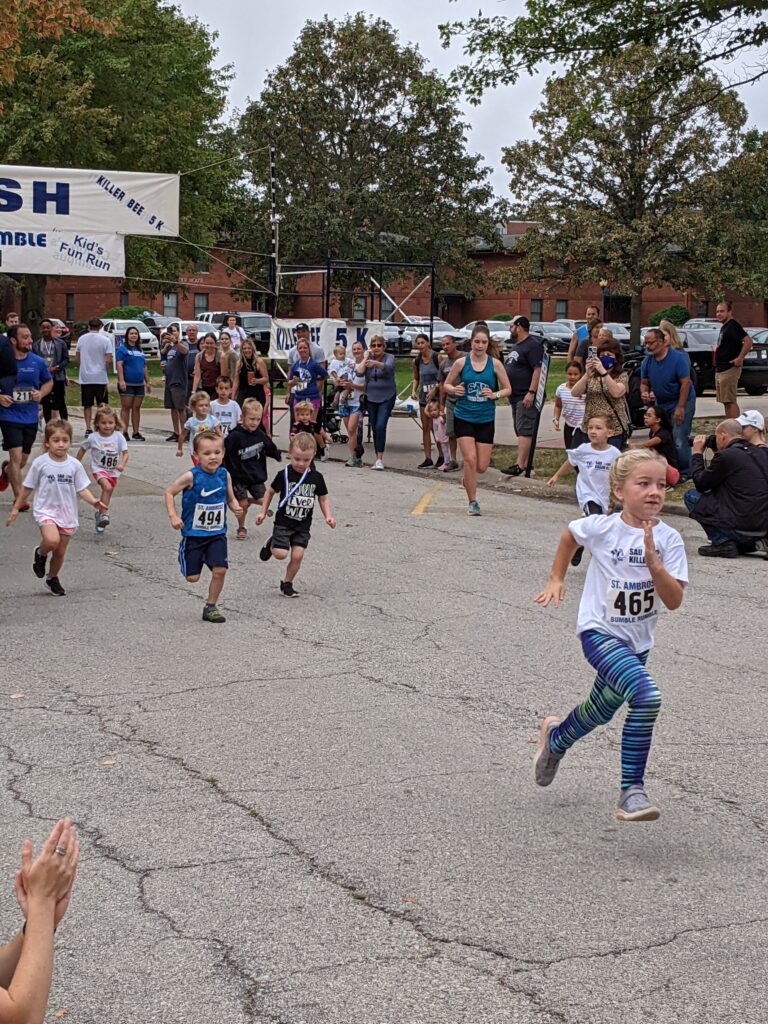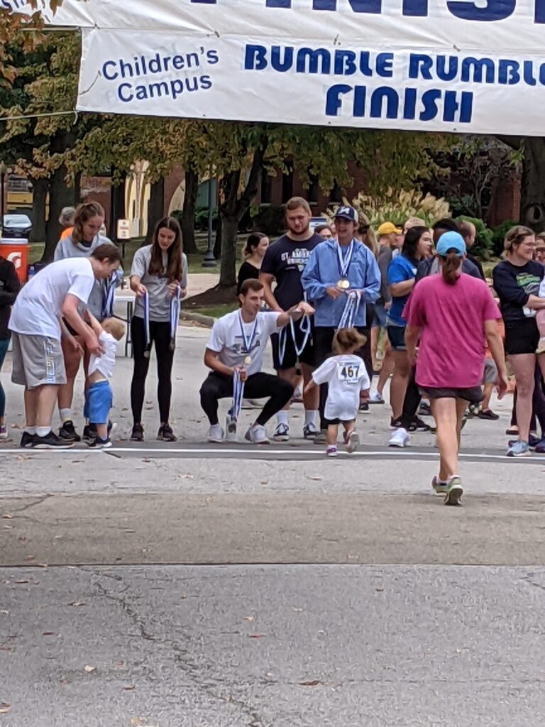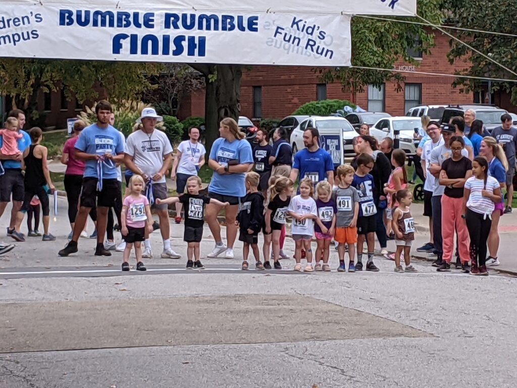 Immediately following the 5k, the children of the alumni took on the Bumble Rumble. They were separated into four groups, the 50m, 100m, 400m, and 800m. The crowd cheered them on every step of the way, and there were only a few minor wipeouts.