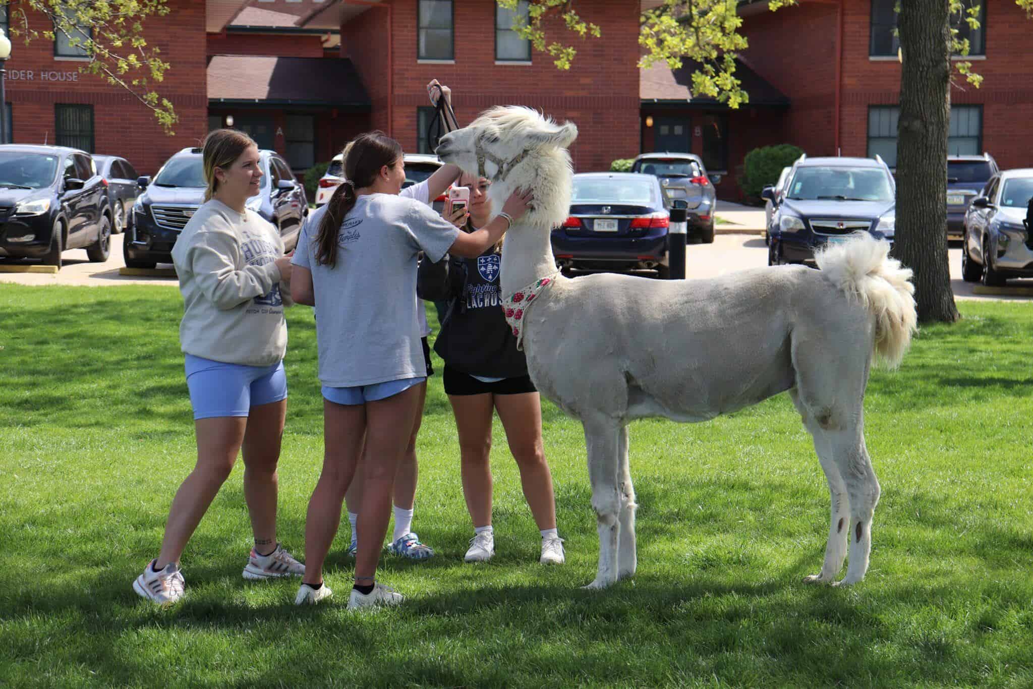 Schmidt says the Llama Lineup is one of her favorite events. “I call them therapy llamas because they are therapy llamas. They’re a break from studying, and everyone loves them!”