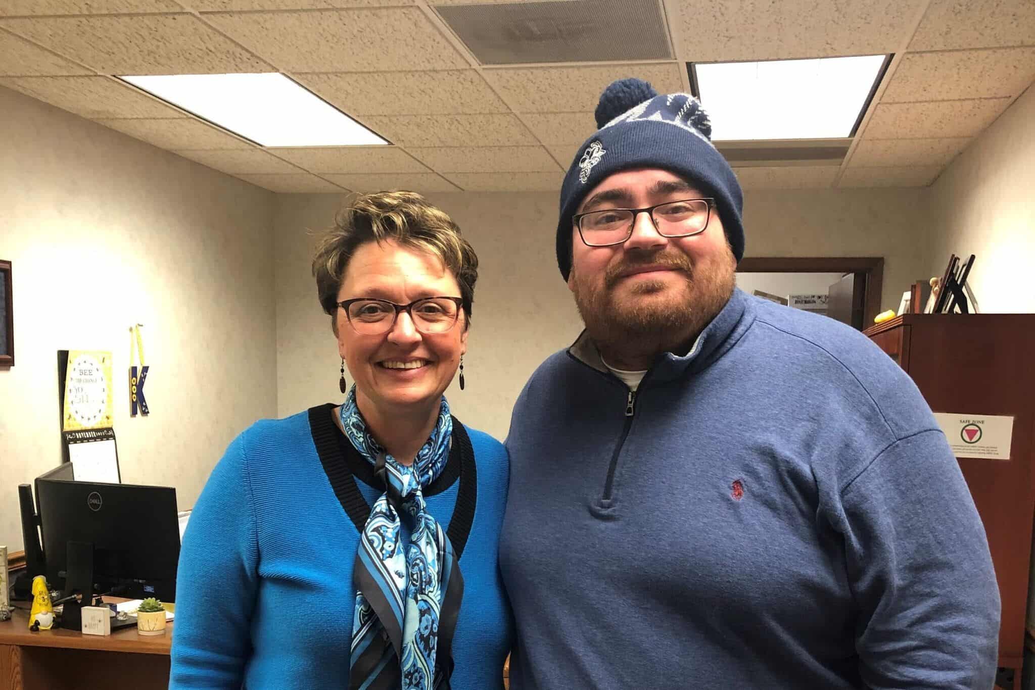 Above: SAU President Amy Novak meets with SAU Political Science major Michael Tappa for a Buzz interview on the war’s impact on college campuses. Photo courtesy of Michael Tappa.