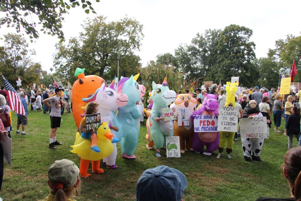 As people marched around the park, they were often met by passing cars honking in support. There were also a handful of pro-Trump supporters who were defending the current administration.