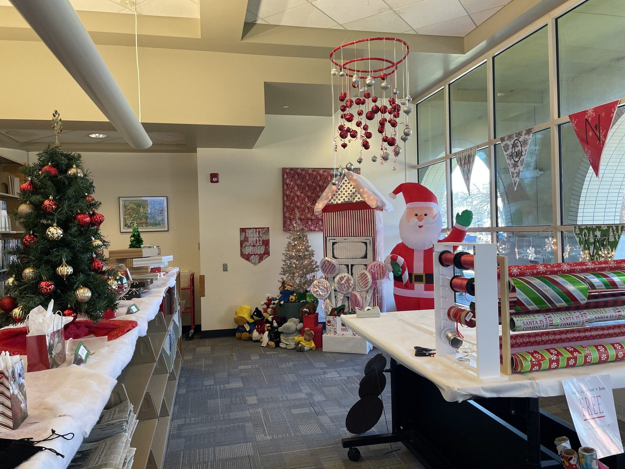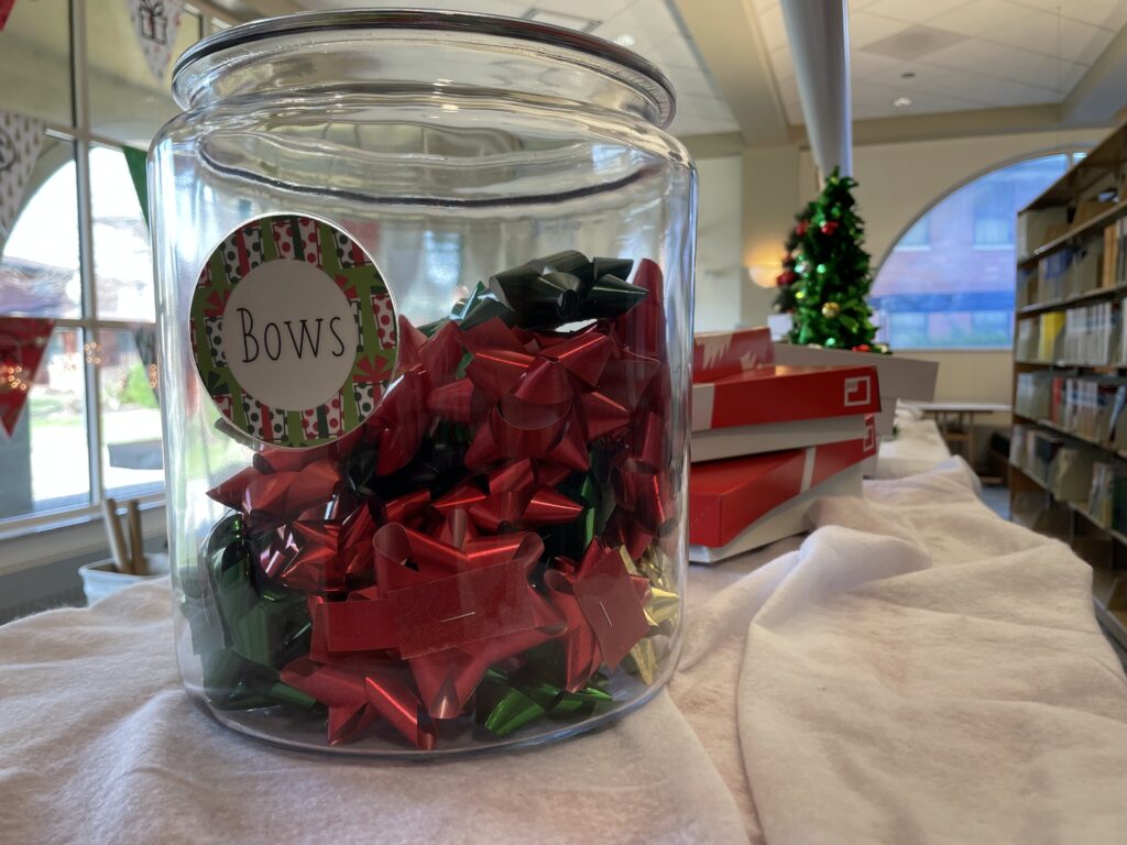 It is a gift wrapping station available for all students. It is filled with bows, bags, tissue paper, ribbons, and anything you may need for your holiday gifts this year.