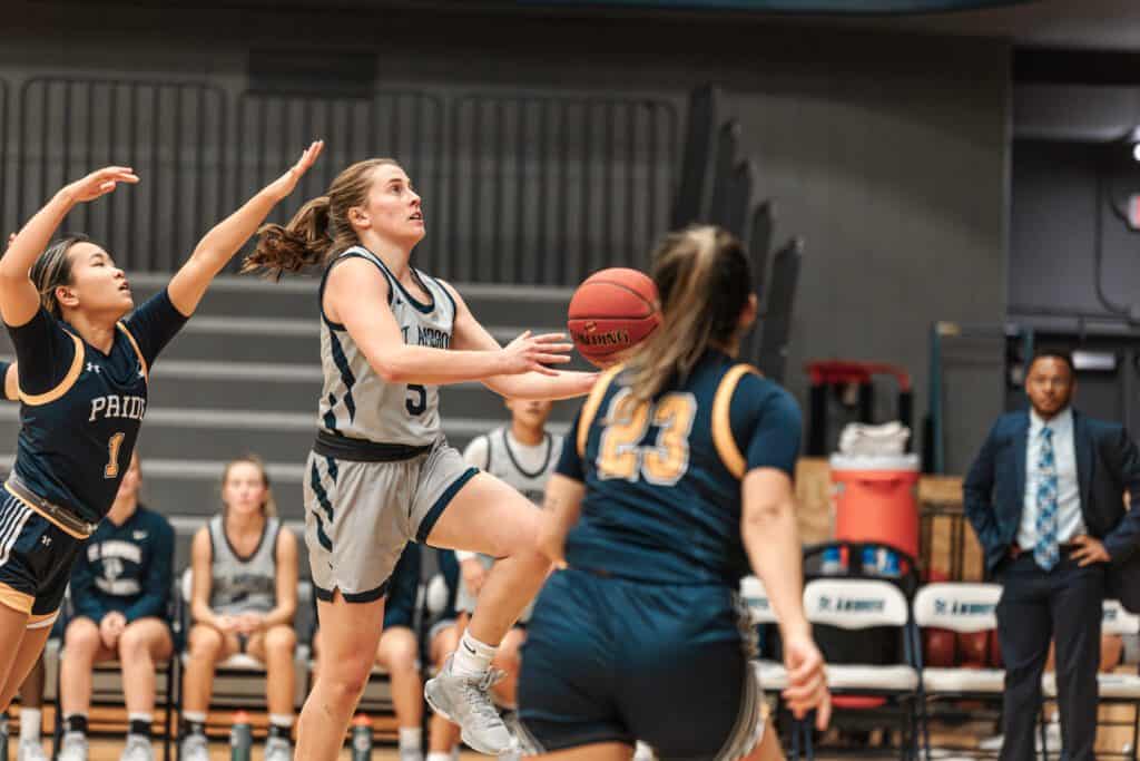 Above: #5, Caroline Cool, going in for the layup after weaving through defenders. Photo courtesy of Sydnee Horstman.