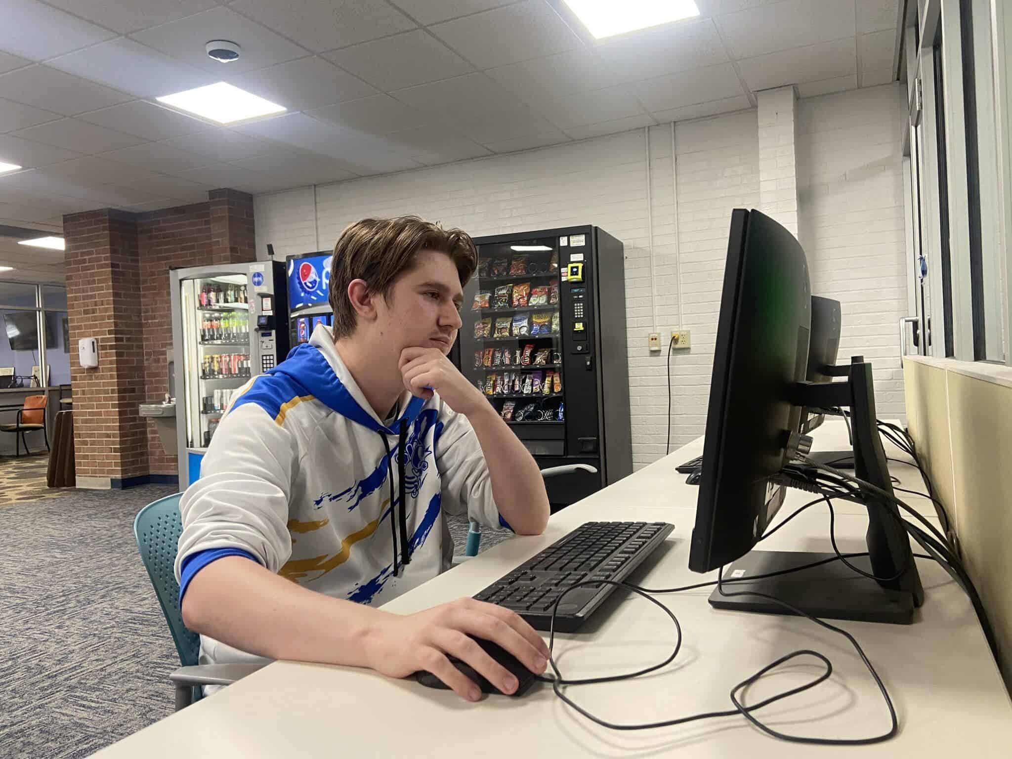 Digital media production major Cooper Alt says his finals “Are all over the place…a few video editing ones, working on a paper that I might make a video for…and then a couple tests for my easier classes also a test for volleyball of all things…video editing is a passion of mine so I’m excited to get into it, writing is significantly less so…especially since I need to go around and talk to people…and the tests are annoying but I’ll get past them.”